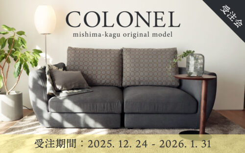丸みのある柔らかなフォルムと、 身体をそっと預けられる心地よい座り心地が魅力の COLONEL(コロネル) ただいま三島家具オンラインショップでは、 背クッションの張地に人気ブランド 「mina perhonen(ミナペルホネン)」の tambourine(タンバリン)柄をお選びい……