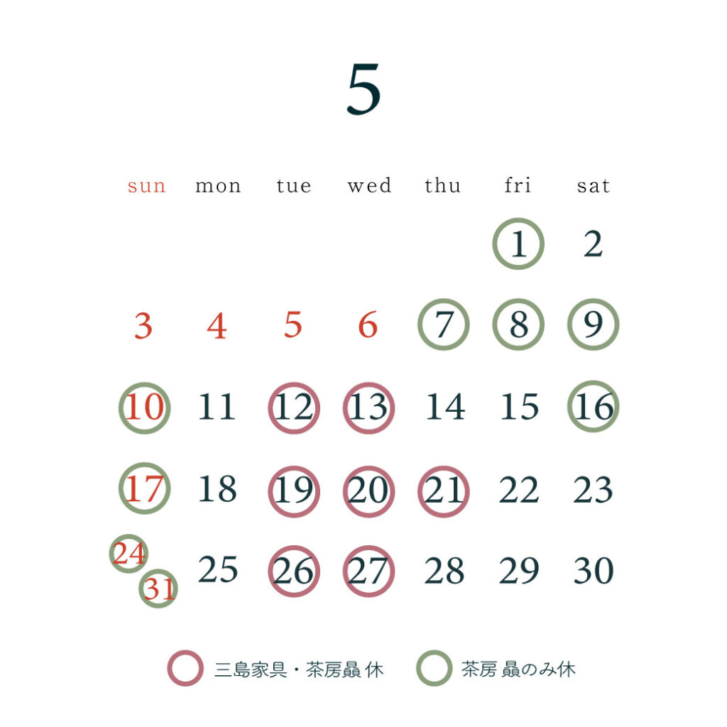 ■ 5月の 茶房 贔 の営業日は通常と異なります。