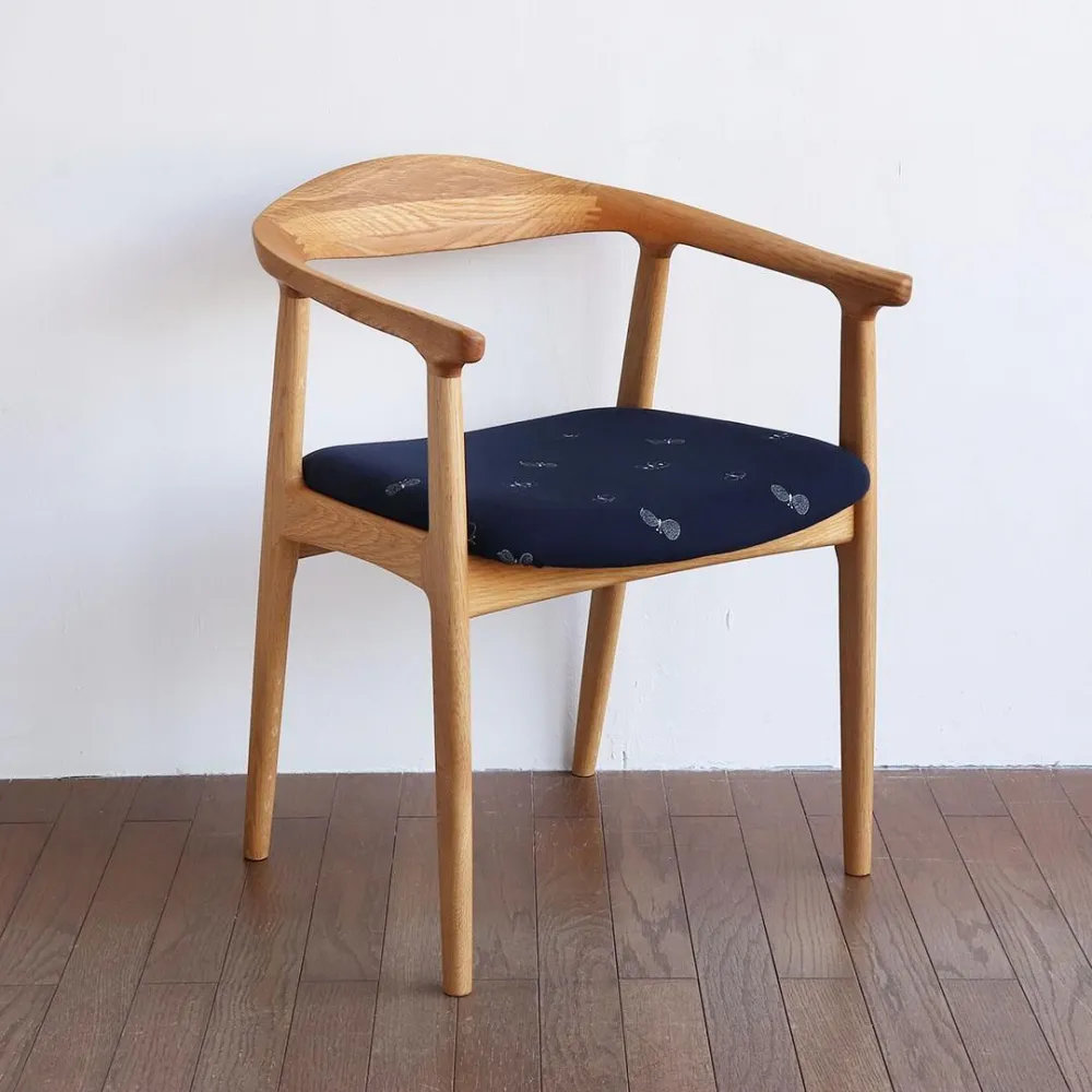 ユナセミアームチェアとオメガチェアは肘から背もたれまで無垢材で、