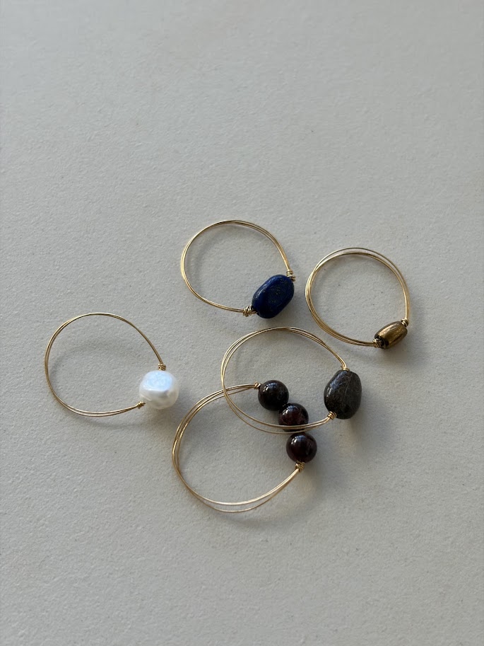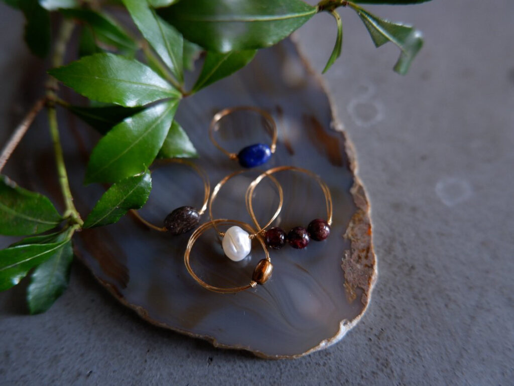 シンプルながらも、天然石の存在感が引き立つリングは、