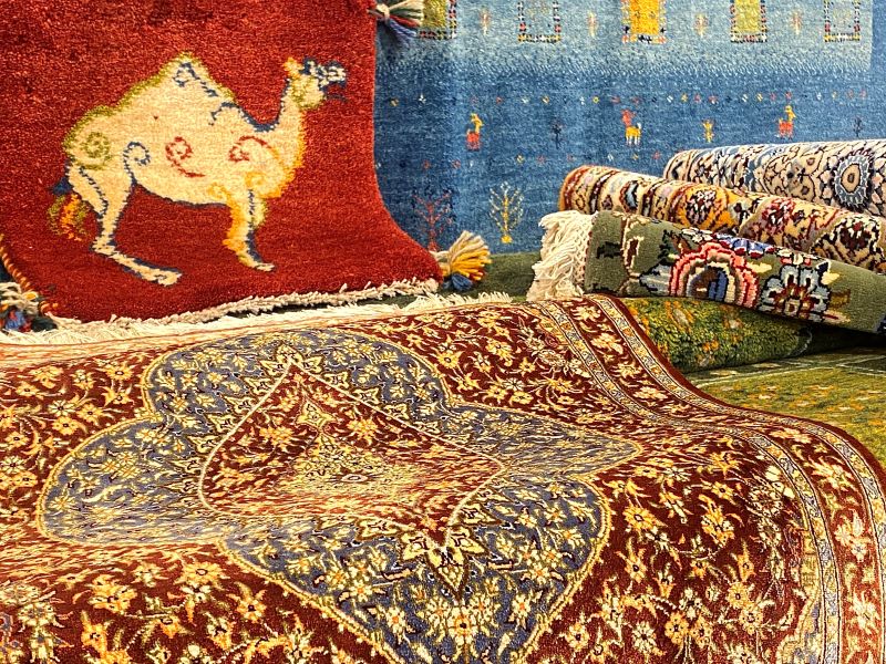 地域最大規模の展示枚数で現地のバザールさながらの雰囲気のなか、お求めやすい玄関マットサイズからリビングサイズ、一期一会のアンティーク品や絵画絨毯まで、300点以上の品ぞろえから本場イラン人のスタッフとご納得の一枚をお選びいただけます。