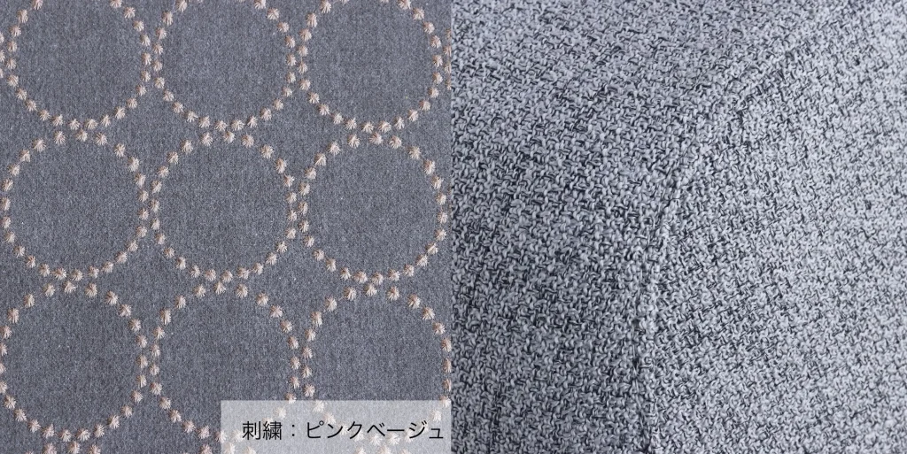 グレーを基調にブラックの糸を織り交ぜることで、奥行きのある立体感が生まれています。