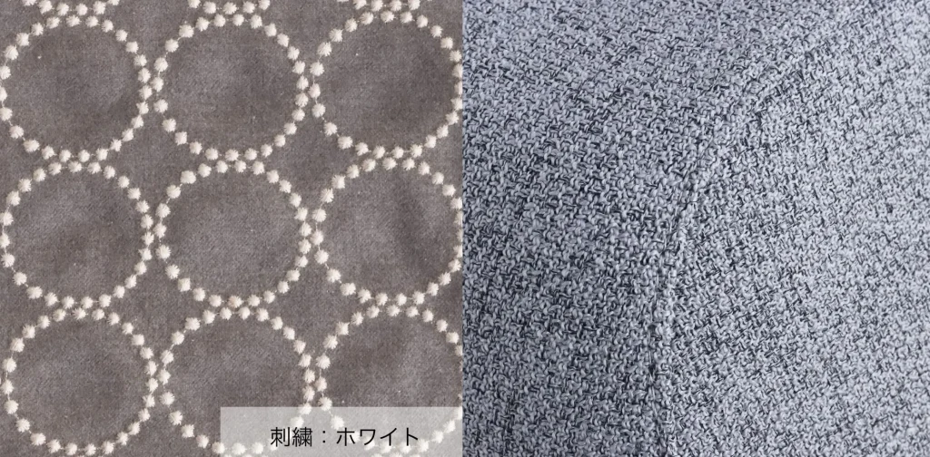 クッションの支えになる、本体部分はどちらも同じ「標準生地」グレーの生地。ざっくりとした織り感が魅力の生地です。