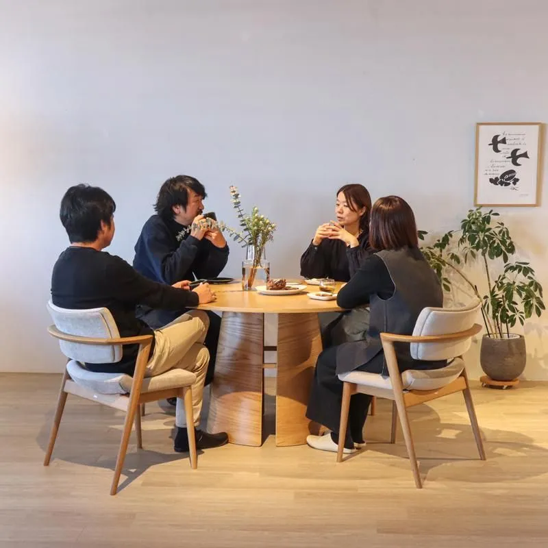 角がない円形テーブルは、座る人同士の視線が