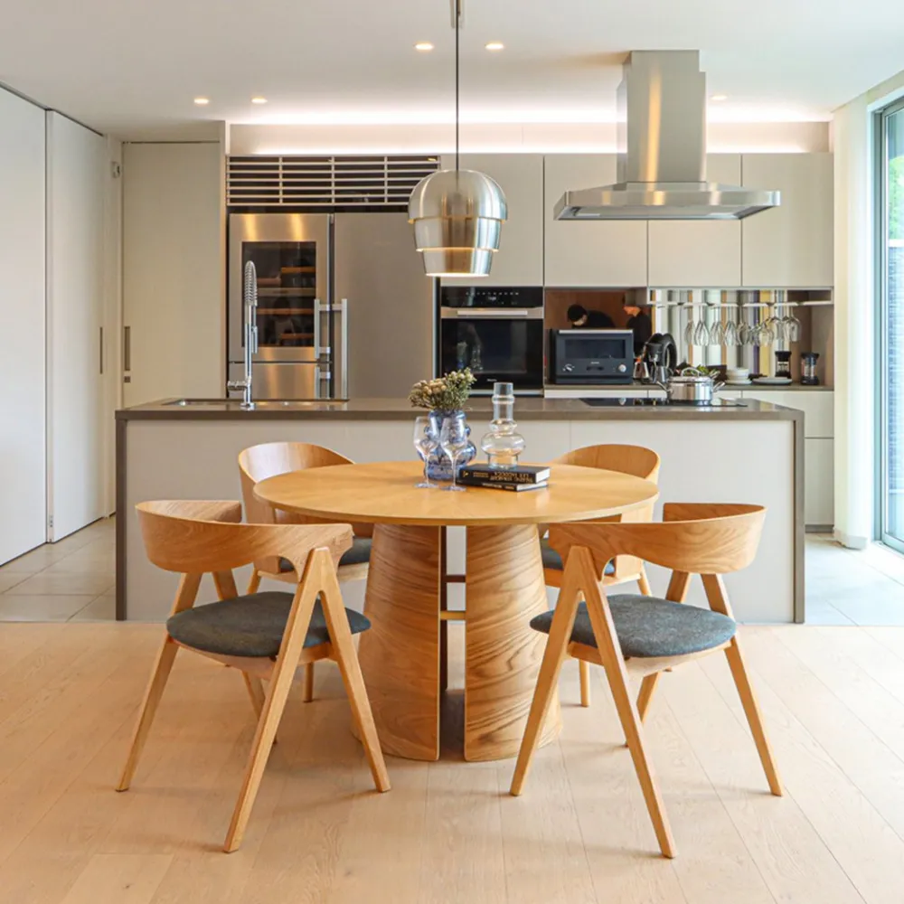 まず目を引くのは、美しい木目の円形テーブル。