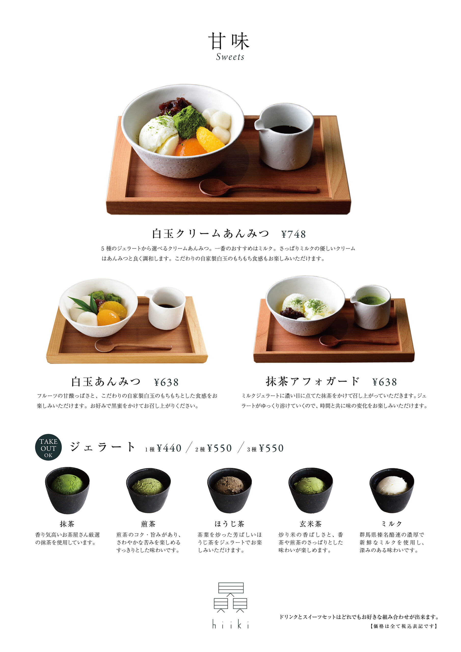 抹茶のジェラートやあんみつなど、和のスイーツも愉しむことができます。