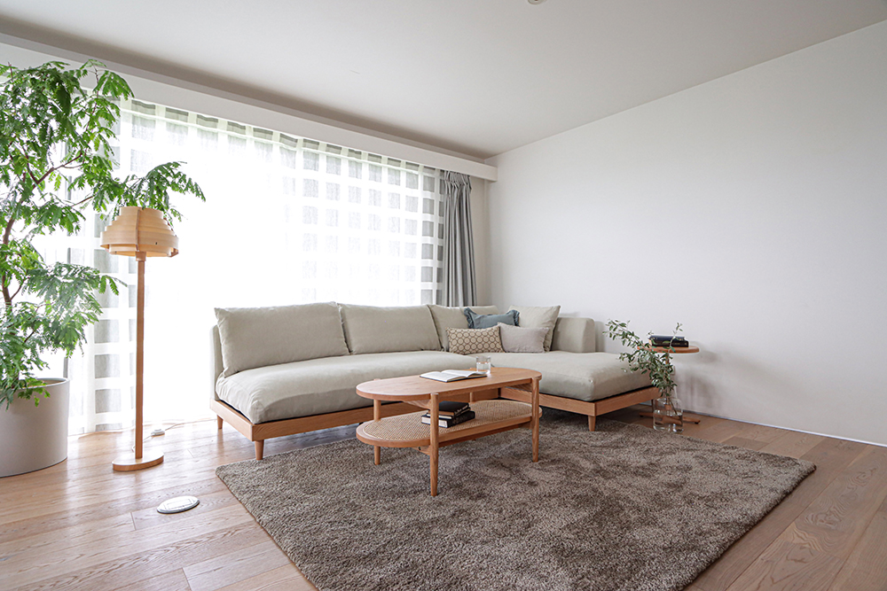 対象アイテム|アームレスソファ、カウチソファ、リビングテーブル、TV ボード