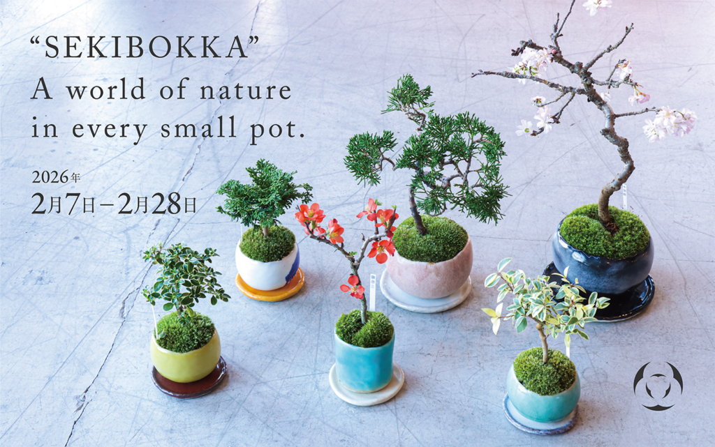 石木花(SEKIBOKKA)は、山形から生まれた手のひらサイズの盆栽ブランド。「小さな器に広がる自然」をテーマに、暮らしの中で気軽に植物を楽しめます。今回の企画展では、季節の石木花を中心に、育てる楽しさや眺める豊かさをご紹介。初めての方もぜひお立ち寄りください。