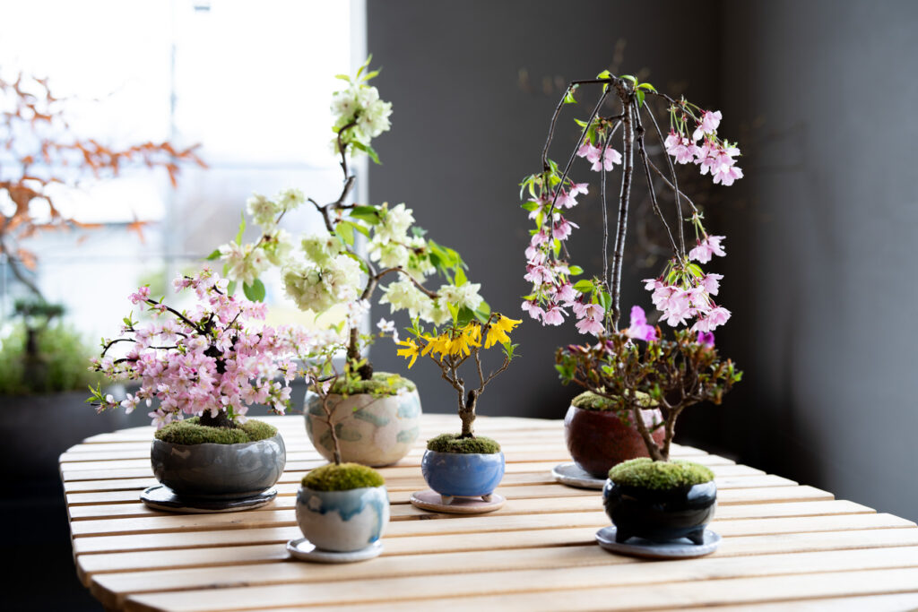 小さな器の中に広がる、静かな自然の景色。花や盆栽は、日々の暮らしのそばで季節の移ろいをそっと教えてくれます。眺め、手をかけ、時間を重ねることで生まれる表情の変化もまた、楽しみのひとつです。